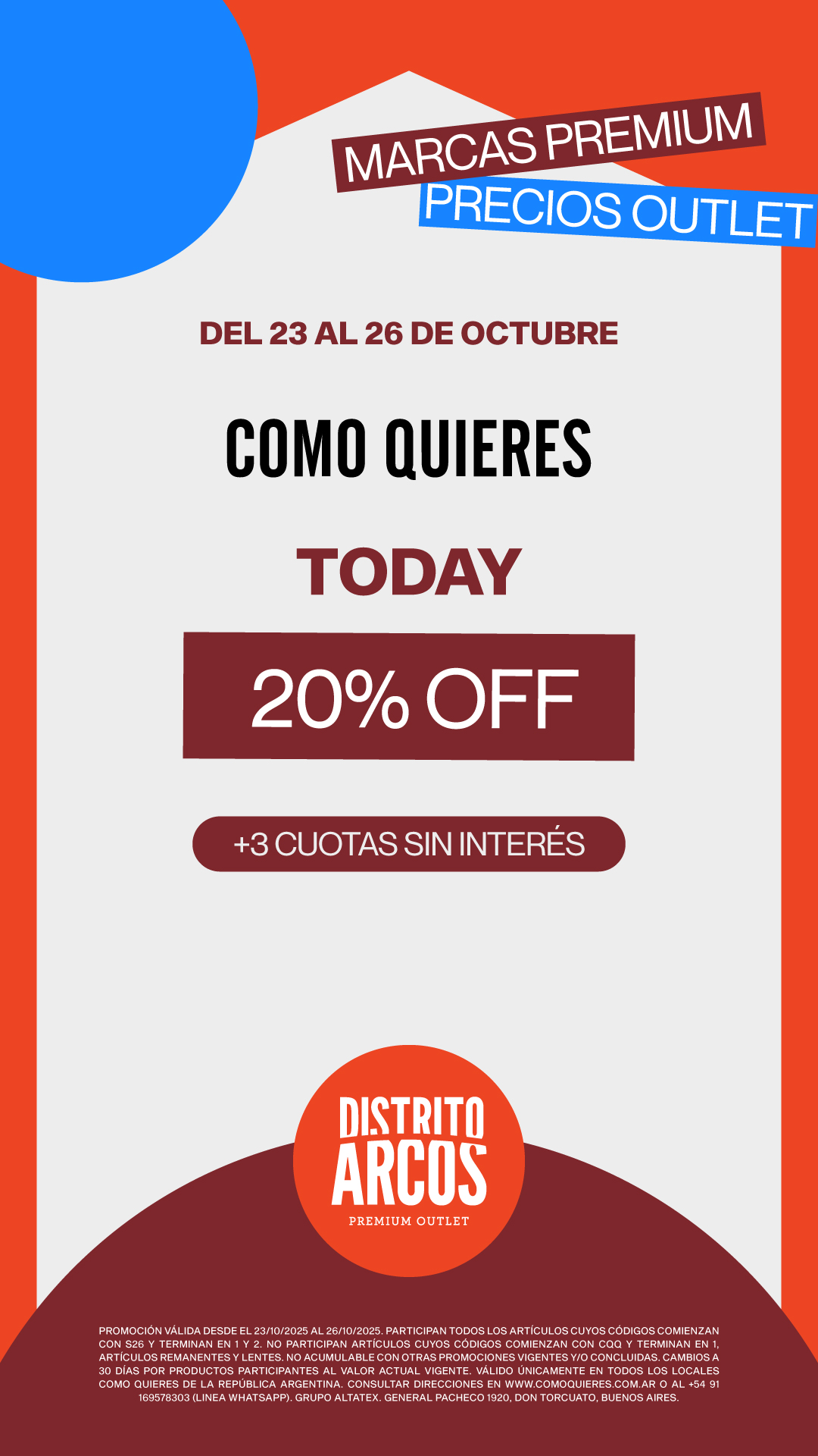Distrito arcos es un concepto comercial urbano con características novedosas y únicas. Con un espíritu de Premium Outlet, ofrece una experiencia de compra única que combina las mejores marcas con una propuestas de compra premium que incluye productos al mejor precio y variadas opciones gastronómicas en un entorno diferente.
